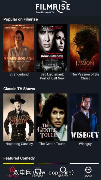 FilmRise提供了免费的电影和电视应用程序体验,使您可以在广告中断有限的情况下立即进入。像大多数电影应用程序一样,您可以在启动时滚动浏览具有大量类别的主屏幕。如果您想探索另一种方式,可以使用“浏览"按钮直接在电影,电视和最近添加的标题之间进行过滤。