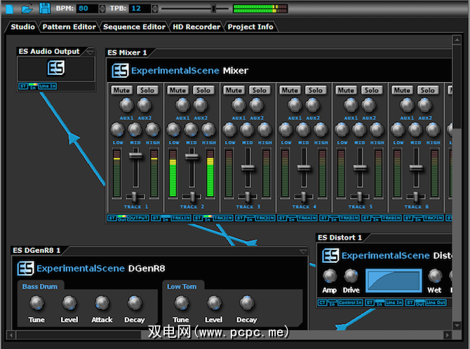 该平台具有Virtual Studio,Pattern Editor,Sequence Editor和Multitrack Hard Disk Recorder。使用样式编辑器,您可以选择和编辑数字音乐样式。音序编辑器使您可以排列可按任何顺序播放的图案,并将音轨图案混合在一起。 HD录制器选项卡包括用于流音频的录制选项。该程序还包括19个不同的插件,可用于向轨道添加虚拟效果。