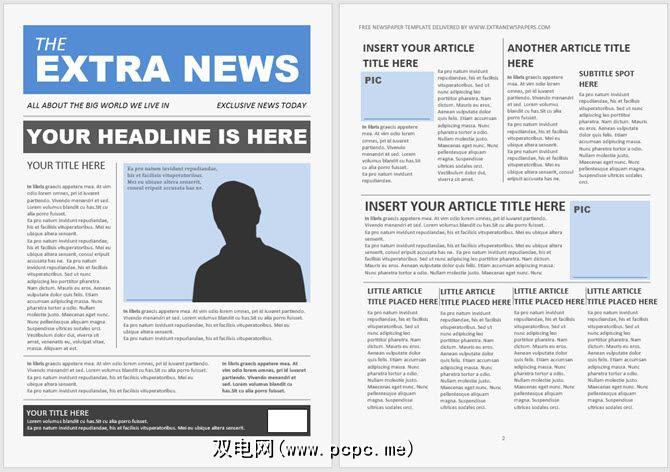 对于独特的报纸样式模板,TidyForm提供了这个很酷的选择。该免费模板有两页,在首页上有一个大图片的位置,就像传统报纸一样。您可以在第二页上添加几张照片,并使用较大的文本区域获取最重要的信息。此简洁的选项使您可以轻松地共享公司或组织的新闻。