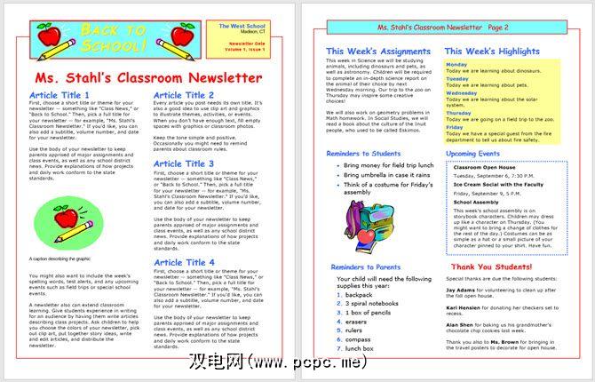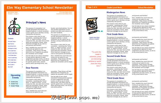 这个三栏,四页,以教育为主题的新闻通讯模板是整个学校的理想选择。它提供了学校每个年级,新生和教职员工的新闻栏目,并且在首页上设有目录以供快速扫描。您还可以包括您的学校照片,徽标和座右铭,以使其完全自定义。