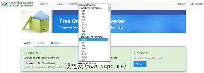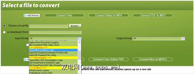 Convert.Files是另一个简单的选项,具有多种输入和输出文件格式。浏览您的文件或输入其URL即可开始。从文档,图形,演示文稿,电子书,视频,图像,档案或音频类型中选择格式。如果您上传文件,则很容易检测到输入法,它会自动以正确的格式填充。
