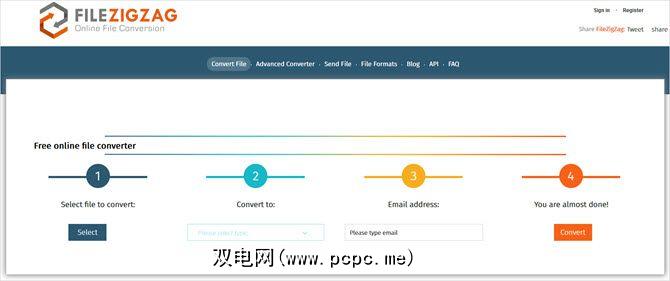 FileZigZag是类似于Zamzar的基于电子邮件的文件转换器,并支持文档,音频,图像,视频和存档文件格式。只需上传文件,选择输出格式,输入您的电子邮件地址,然后单击转换。收到电子邮件后,请单击链接获取转换后的文件。