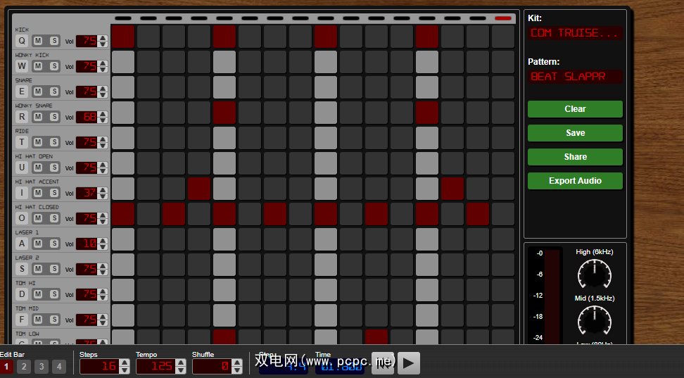 此外,您可以随时调整步数和速度,以及调整单个乐器的音量以及高、中和低值。