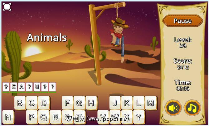 您的目标与原始的Hangman游戏相同,因为您需要在牛仔遇见死亡之前猜测单词。每次猜错字母后,都会将一部分牛仔添加到绳索中。因此,将牧场主鞍起来并保存在 Wild West Hangman 中。