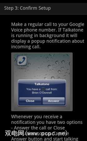 Talkatone登录后会在后台运行,因此在接到电话时会收到通知。致电您自己以验证一切是否正常。