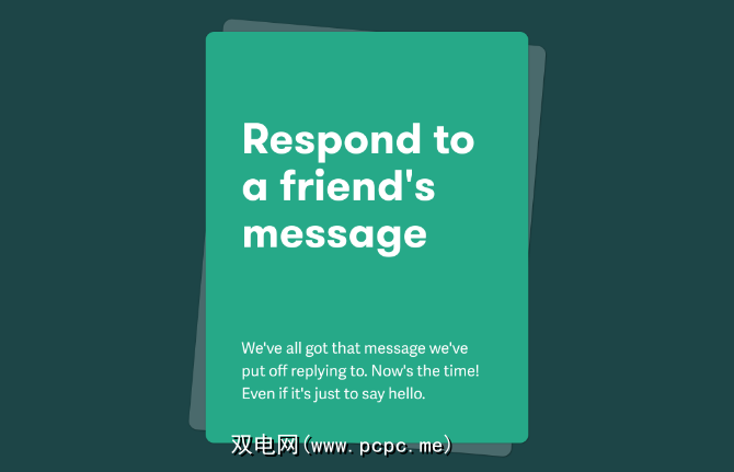Care Cards是针对移动设备进行了优化的Web应用程序,您也可以将其转换为手机上的应用程序。卡片具有舒缓和镇静的设计,并提供有用的提示来照顾自己。例如,这可能是一种自我提升,例如一张卡片,说明您是个有成就的坚强人。或者可能只是简单地微笑就可以提醒我们,因为科学表明,这种小行为会使您的身体释放出使您快乐的化学物质。