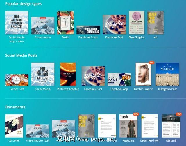 在Canva中选择要使用的现有模板非常简单。只需启动该应用程序,您就会看到各种选项。
