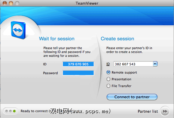 这是Mac应用程序的屏幕截图。左侧是允许某人与您建立连接的访问码,右侧是您可以与某人进行连接的地方。