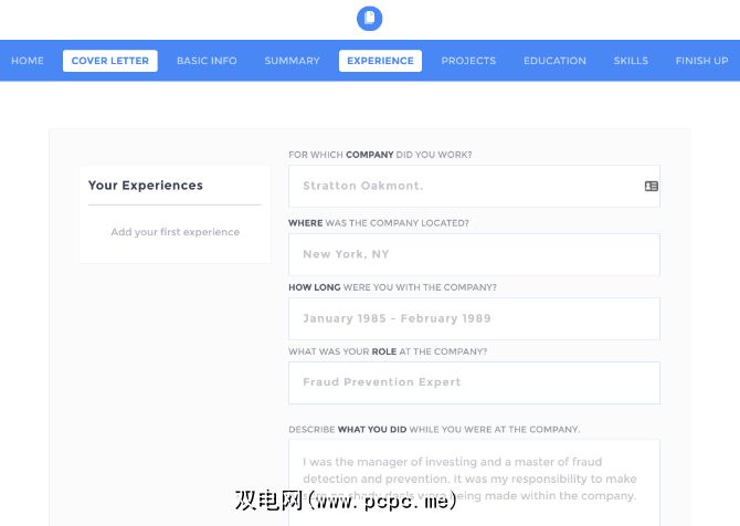 更新后的webapp无需注册即可使用,它引导您完成创建经典简历的每个步骤。首先,填写求职信。然后执行添加有关个人详细信息,专业摘要,经验,项目,学历和技能的信息的步骤。