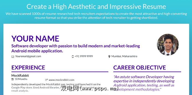 1。 MockRabbit的简历制作工具(网络):有吸引力的简历,无需大惊小怪
