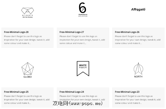 Matt Nunney的免费最小徽标是与遵循简约设计标准的徽标集合。这些徽标以PowerPoint文件的形式出现,可以更轻松地编辑带有文本的徽标。但是您可以轻松地将它们复制到图像编辑器,然后将其转换为SVG或其他格式。