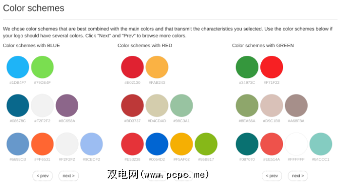 Logomak将根据您的选择为徽标选择三种主要颜色,以及基于每种颜色的多种配色方案。如果您不是设计师,那么这是有价值的信息。