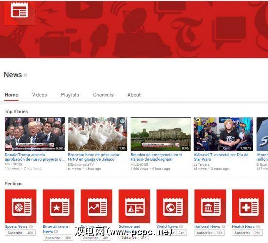 但YouTube最佳状态是自动生成的新闻频道。如果您转到主要新闻频道,则会发现另外七个子类别。它们是体育新闻,娱乐新闻,商业新闻,科学技术新闻,世界新闻,国家新闻和健康新闻。