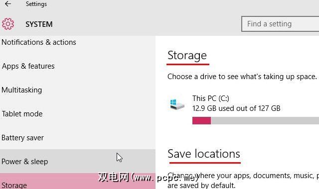 您还可以将现有应用程序移至可移动存储设备中,但必须手动操作在“存储"部分(位于“保存位置"上方)下,单击系统驱动器,该驱动器很可能显示为“这台PC"。