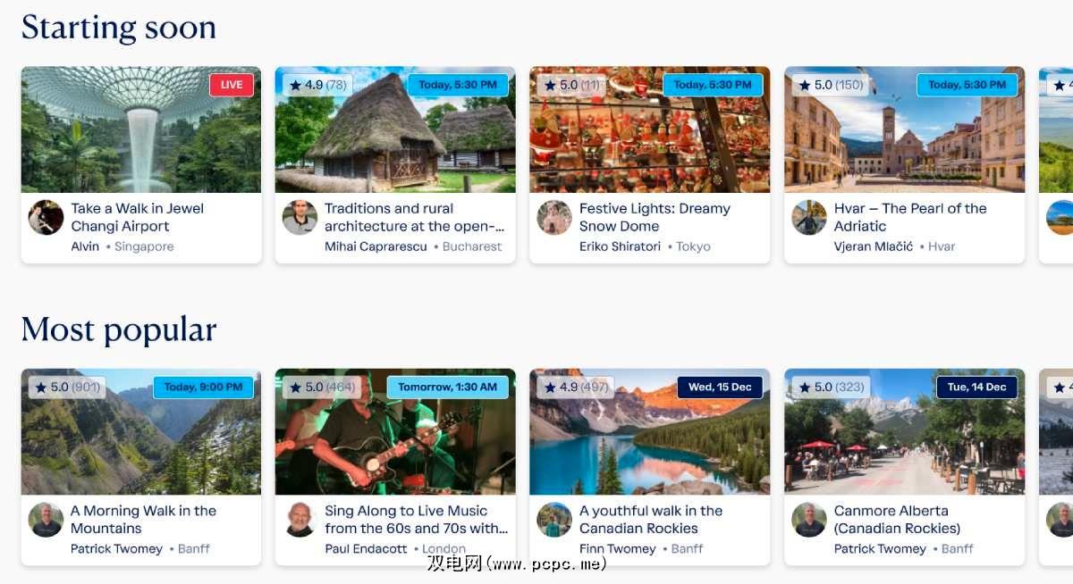 除了实时导览,Heygo 还存储了所有以前的虚拟导览供您浏览。您可以按类别(历史、建筑、文化、博物馆等)或位置找到它们,还可以查看最受欢迎的 Heygo 之旅。日历列出了即将到来的实时旅游,以防您想将其计划为一项活动并加入真正最好的免费虚拟旅行体验之一。