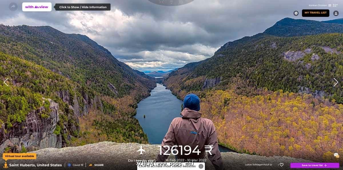 对于每个位置,带有视图的选项卡都会为您提供附加信息。您将看到 Google 地图上是否提供虚拟游览,以及 Google 地球上是否提供无人机视图。它还标志着您是否需要签证才能访问那个地方,以及旅行的费用。如果您喜欢某样东西,请将其添加到您的愿望清单中,以免丢失。