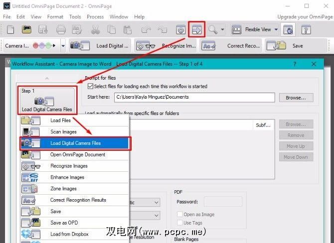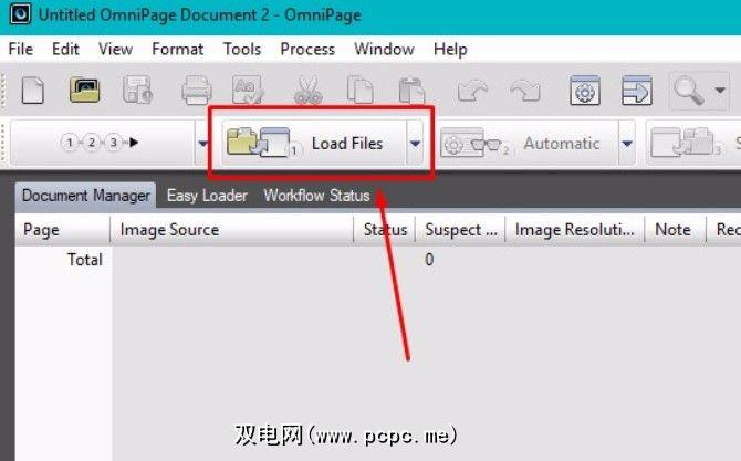 OmniPage在其主屏幕顶部具有逐步的按钮菜单,告诉您该怎么做。使用此文件,我将PDF文件上传到软件。