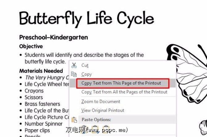在这篇Microsoft文章中的说明中,我右键单击了PDF图像,然后选择了从打印输出的此页面复制文本。