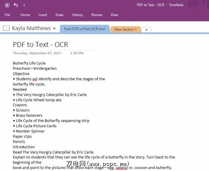 在新页面中,我粘贴了文本。 OneNote成功复制了PDF文档首页中的文本。它不能很好地保持PDF格式,但是文本是可编辑和可搜索的,而且似乎拼写都不正确。