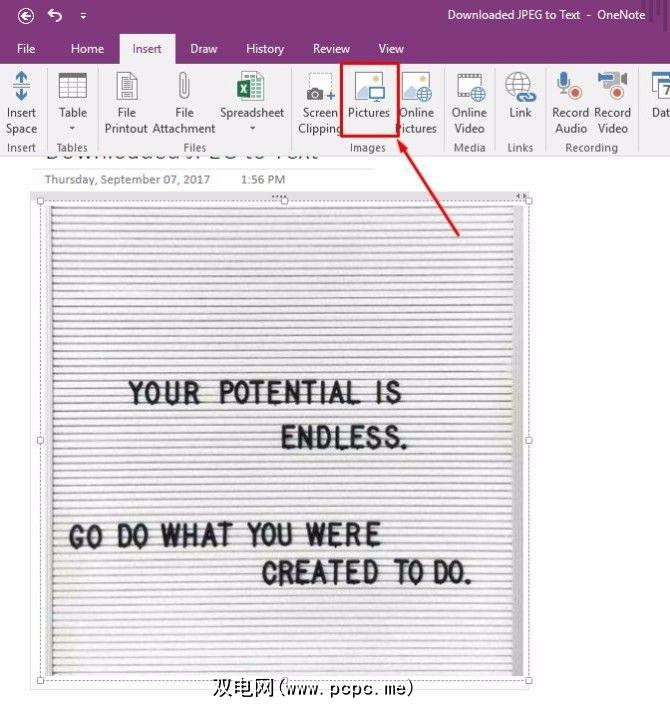 再次使用插入照片选项,将照片添加到新的OneNote页面。