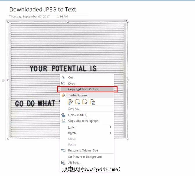 使用这两种文件格式,当我将其插入OneNote时,我仍然可以选择从该图片中复制文本。