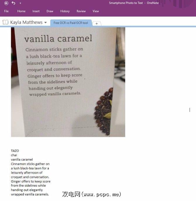 然后,我在图像下方单击并粘贴文本,OneNote的捕获效果出奇地准确!