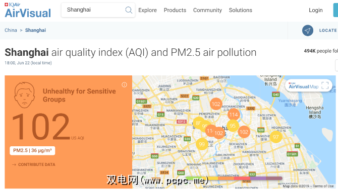 关于AirVisual的好处是,它还可以为您提供有关城市某些地区的数据,有助于在地图上绘制。您会惊讶地发现城市不同部分之间的空气质量会有多少变化,因此该数据非常值得检查。