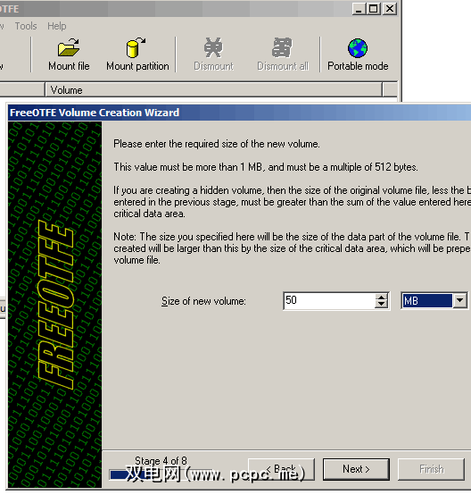 在接下来的步骤中,系统将要求您选择卷文件的大小和密码以及一些其他选项,例如您可以保留默认设置。