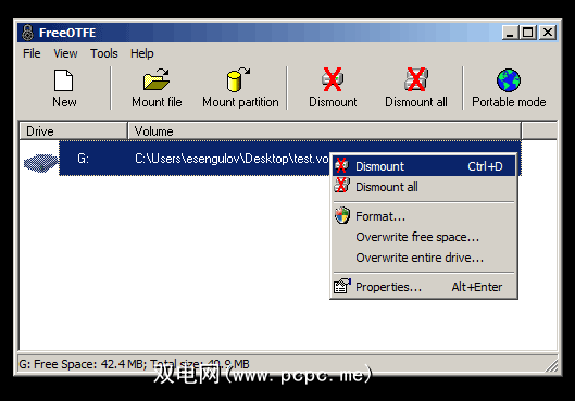 格式化卷后,您可以开始将文件移动到那里。完成后,打开FreeOTFE并选择“卸载"选项以隐藏磁盘/卷。