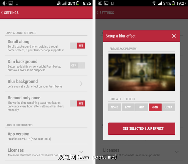 您可以选择四个级别的模糊之一。我觉得此功能不是很有用,因为它是一个全局设置-有些墙纸在锐利的情况下看起来更好,而另一些在模糊效果下效果很好。不过,就像我购买的大多数应用程序一样,对我来说,更多的是支持为生态系统添加些好东西的Android开发人员。