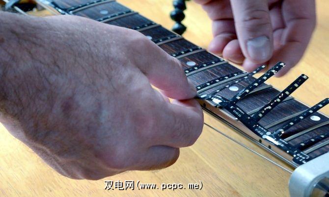 Fret Zealot套件(一个成功的Kickstarter项目,单元价格从200美元起)的主要组件是蓝牙LED阵列,它位于前15个吉他的品格-原声或电。每个音色位置的每根琴弦都有LED,当您弹奏音符或和弦时,这些灯会亮起。琴头架上甚至还有一排LED,用于弹奏开放的弦。