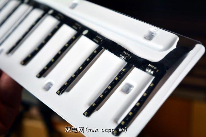 打开盒子的包装会发现很多有趣的配件。除了Fret Zealot LED灯条本身之外,您还可以找到电池组和电缆,USB充电电缆以及类似变调夹的手柄,并带有两个蝶形螺母。还有三个拨片/拨片,以及用于智能手机或平板电脑的支架。