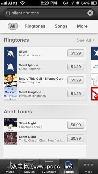 要查找静音铃声,请在iPhone上打开iTunes应用,点击更多< / em>在菜单栏中,然后选择 Tones 。从那里搜索“静音铃声"。