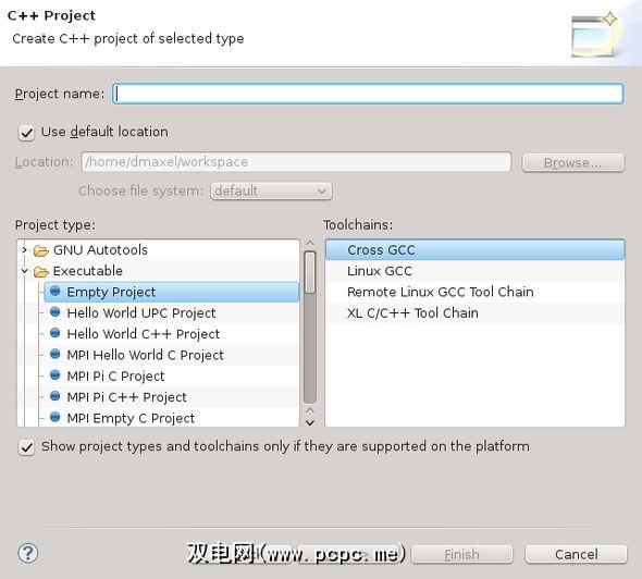 首先,您需要创建一个新项目。 Eclipse将询问您该项目将使用哪种编程语言。此列表中受支持的编程语言的数量取决于安装了哪些其他软件包和插件-使用正确的插件和SDK,您还可以在Eclipse中创建新的Android应用程序项目。在这里,您可以根据项目的类型(如果需要)变得更加具体,还可以选择要使用的工具链/编译器。