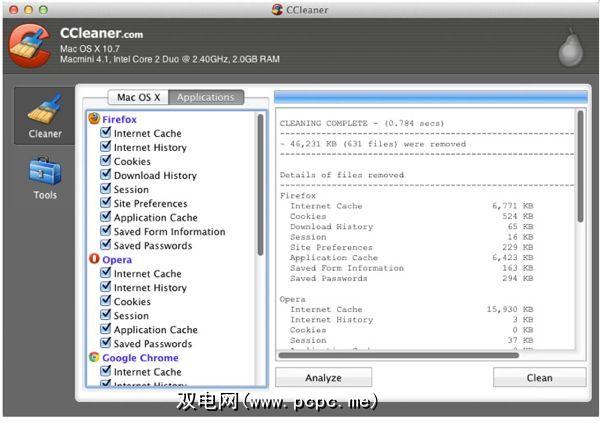 CCleaner对Safari和您使用的其他Web浏览器(包括Firefox和Google Chrome)执行类似的功能。您可以选择清除Internet缓存,浏览器以及下载历史记录,Cookie和应用程序缓存-全部从单个界面中进行。