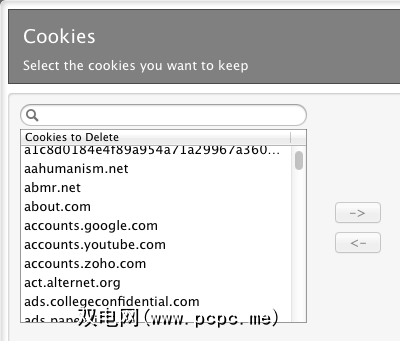 在 Options 窗格下,您还可以告诉CCleaner仅保留选定网站的cookie。同样,您可以选择要CCleaner在其上执行cookie清理操作的浏览器。