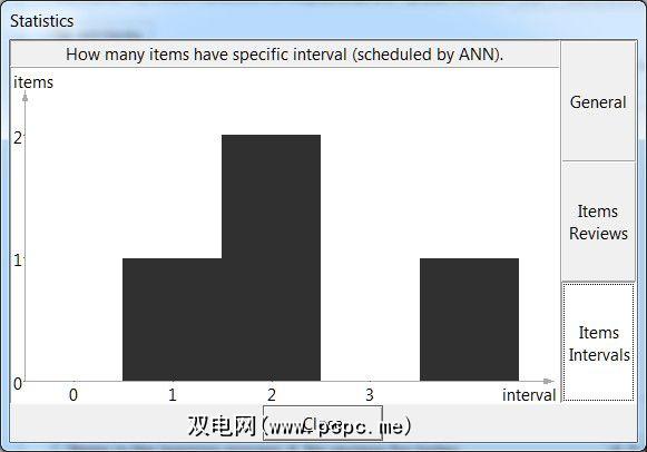一个有用的帮助但此应用容易被忽略的功能是“统计"菜单。打开后,此菜单会提供有关您输入和回答的问题的广泛信息。您可以查看平均成绩,查看某项目的平均次数,以及每个时间间隔内有多少个项目(间隔时间越长问题越多,您会记住的越好)。