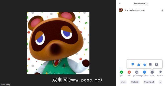 Zoom可以选择一小部分反应。点击底部工具栏上的反应;也许第一个使用该反应的人会回答。另外,点击管理参与者,还会有更多的响应,例如是和否,可用于50/50琐事问题。