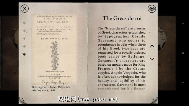 完成每个微型关卡将解锁一本书中的一章,向您介绍有关字体的更多信息历史。解锁每本字体书中的每一章,以了解所有需要了解的知识。实际上,这很酷,令我惊讶的是我停下来阅读每一章,而不仅仅是继续学习下一章。