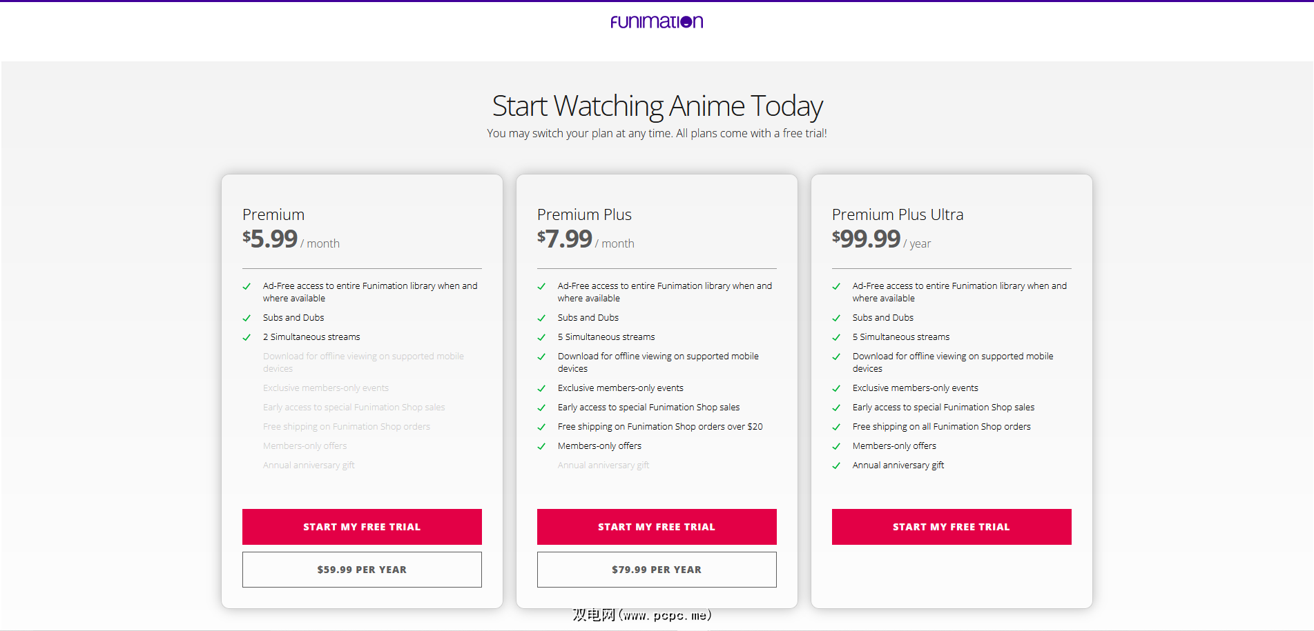 Funimation 的两个主要订阅是 Premium 和 Premium Plus。它们之间的主要区别在于,Premium 最多允许您同时流式传输两台设备,而 Plus 最多允许五台设备并允许您下载剧集以供离线观看。您可以分别以每月 5.99 美元和 7.99 美元的价格获得 Premium 和 Premium Plus,对于您获得的内容量来说,这是相当实惠的。