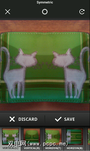 拍照后,FxCamera将根据分割线创建一个对称的版本,让您精确选择哪一面被复制以及如何复制。我知道,这不是以前从未做过的,但是我对它的简单性和流畅性印象深刻。