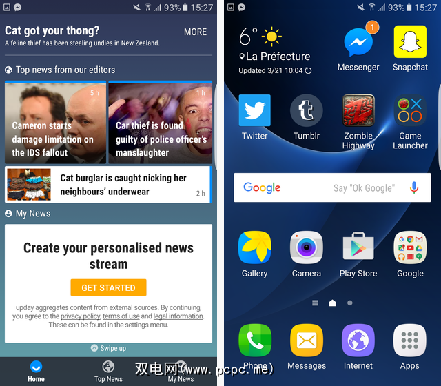 当您在主屏幕上找到自己时,您会看到启动器在屏幕左侧关闭了内置的新闻应用程序,始终向左滑动即可。轻扫一下会有些生涩,而且不如在手机上的其他任何地方轻扫。