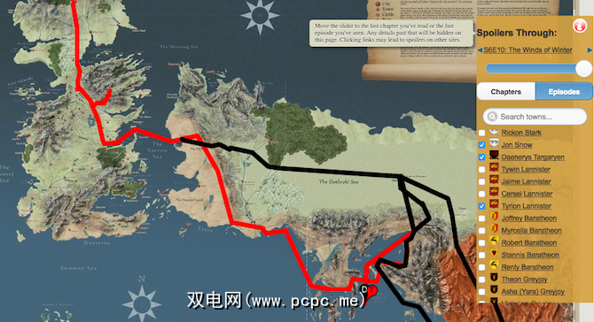在书籍章节或电视节目集之间切换。然后选择要追踪其旅程的角色。在每一集中,您将看到他们去了哪里以及做了什么。这是GoT爱好者的最佳工具之一。
