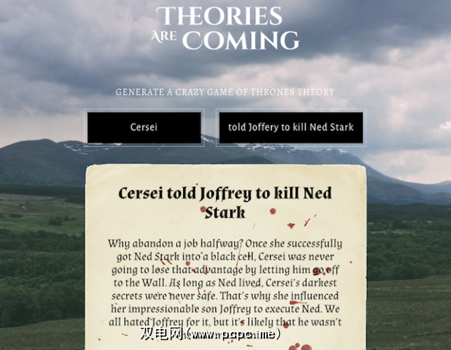 该网站更多地是在关注粉丝理论,并可能会让您的朋友震惊一些牵强的概念。如果您想进行认真的猜测,最好检查一下最有趣的GoT粉丝理论。