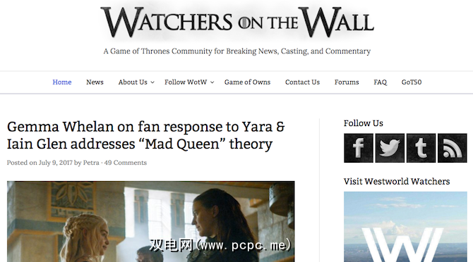 WotW由该节目的粉丝社区处理,负责策划演员访谈,剧透,谣言,剪辑泄漏,促销和其他所有有趣的内容。这是一种简单的博客格式,可让您了解有关电视连续剧的最新动态。对于播客爱好者来说,WotW有一个出色的逐集系列节目,称为“拥有自己的游戏"。