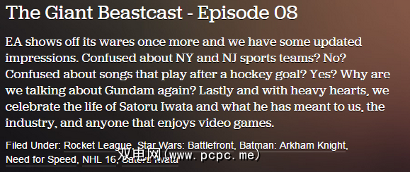 当Patrick Klepik离开Giant Bomb来到Kotaku时,我们认为这可能是他播客生涯的终结,因为他的 Bombin'AM 节目将不再播放。但是他回来了一个名为 Match 3 Podcast 的新节目,并且该节目已经获得好评。它抛弃了您的标准视频游戏播客讨论流程,而是选择深入研究游戏的文化背景。这是与列表中其他播客完全不同的播客,但绝对值得一试。
