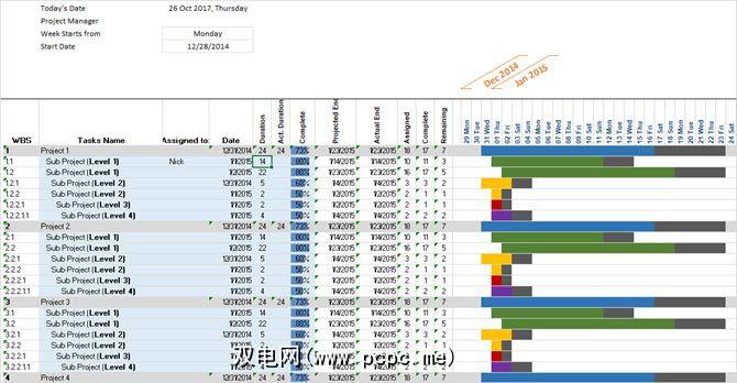 此模板提供了很好的色彩对比,易于阅读,非常适合于详细项目管理。
