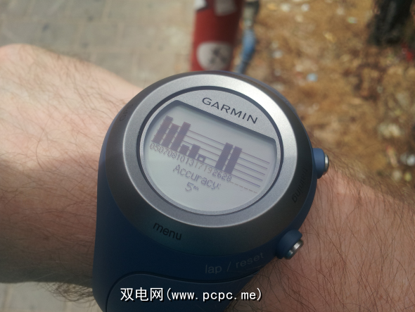 在训练时,您可以触摸挡板的四个主要区域(上,下,左,右)中的每一个,以获取有关其不同方面的信息。会议。例如,触摸挡板的左侧,将弹出以打开GPS菜单。使用此菜单,您可以验证GPS确实已打开,并监视当前精度。这是一个非常酷的显示器,即使我在被高楼大厦包围的狭窄街道上行走,Garmin绝对可以毫不费力地将我跟踪到五米。