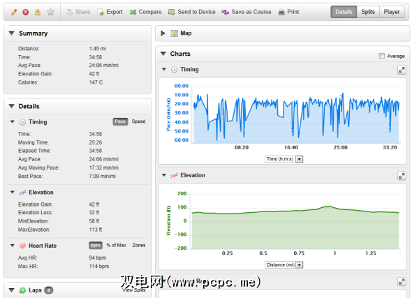 还有一个地图(出于明显的原因,在上面进行了最小化)。通过与RunKeeper跟踪同一会话,我将405CX的内置GPS与我的Galaxy S II GPS进行了比较,并且地图显示的基本相同,因此GPS跟踪至少与在Galaxy S II上一样好(这意味着它非常好)。您还将获得有关会话的良好摘要,以及时间和海拔图。