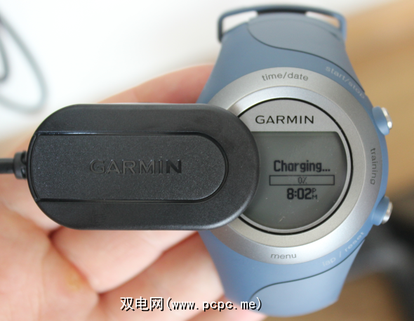 405CX随附有专用的充电器夹,看上去有点像脉搏血氧仪(您知道,它们在医院用手指绑住了)。 USB电缆的另一端是USB电缆,您可以将其插入充电器,然后将卡扣闩锁在手表上,以使其两个小小的“牙齿"咬入手表背面的触点中。
